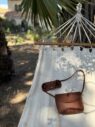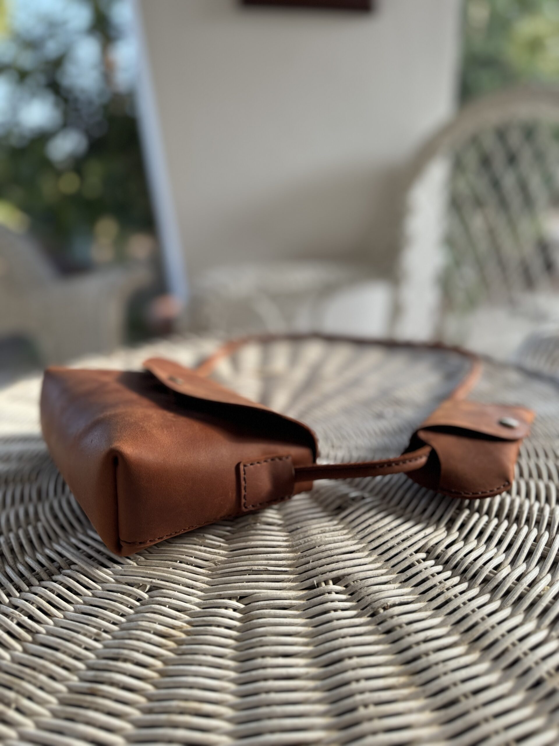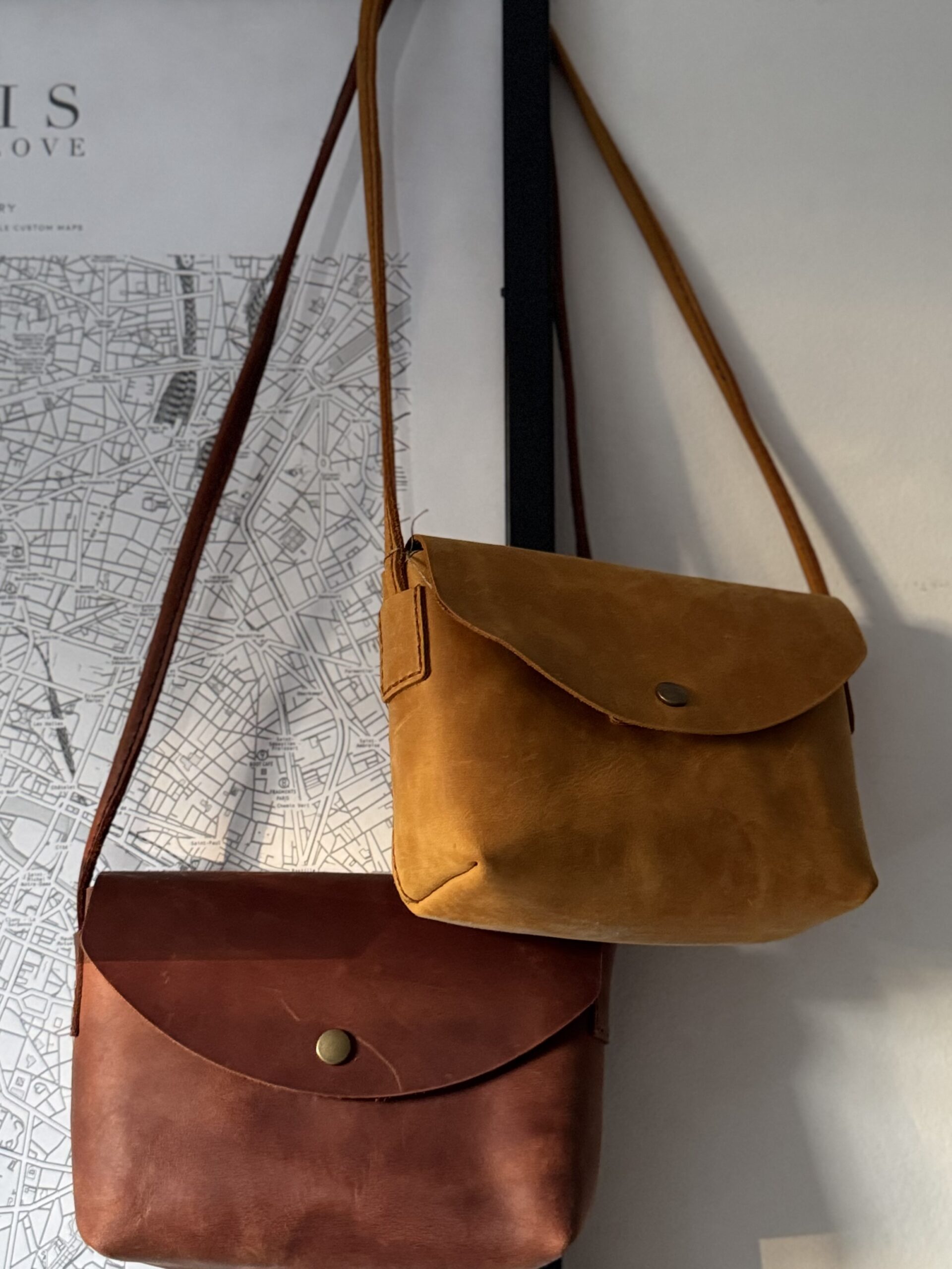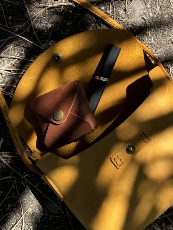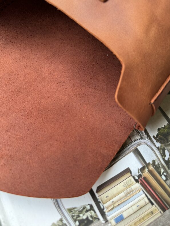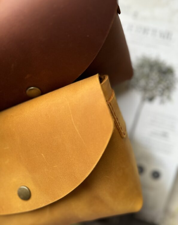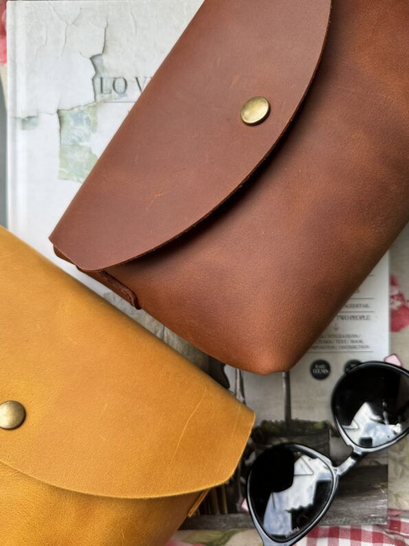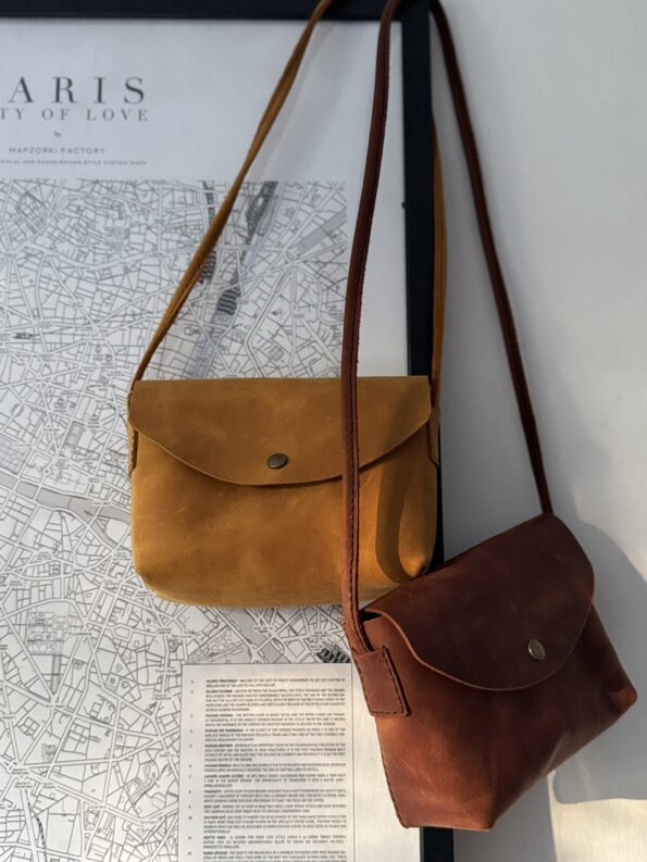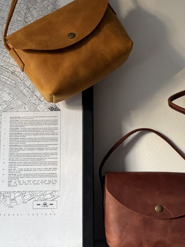 Four carrying options: clutch, handheld, shoulder, or crossbody. Snap button closure. 100% handmade in Poland from a single piece of leather with suede interior lining.